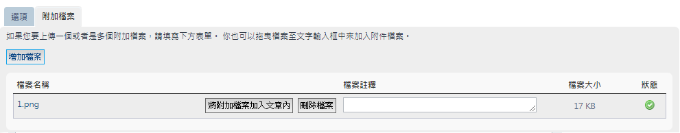 2. 選擇將附加檔案加入文章中
