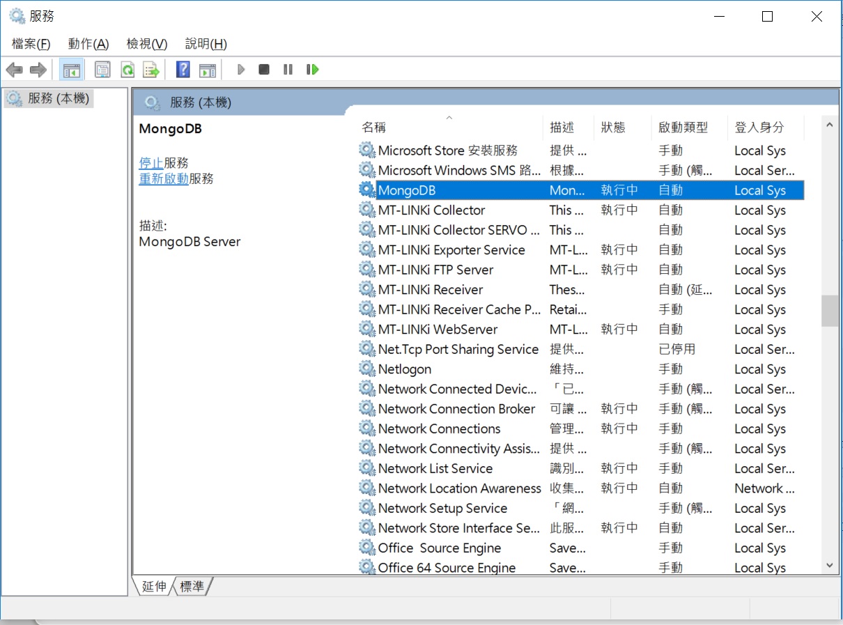 對策:進服務,將MongoDB 服務手動強制開啟